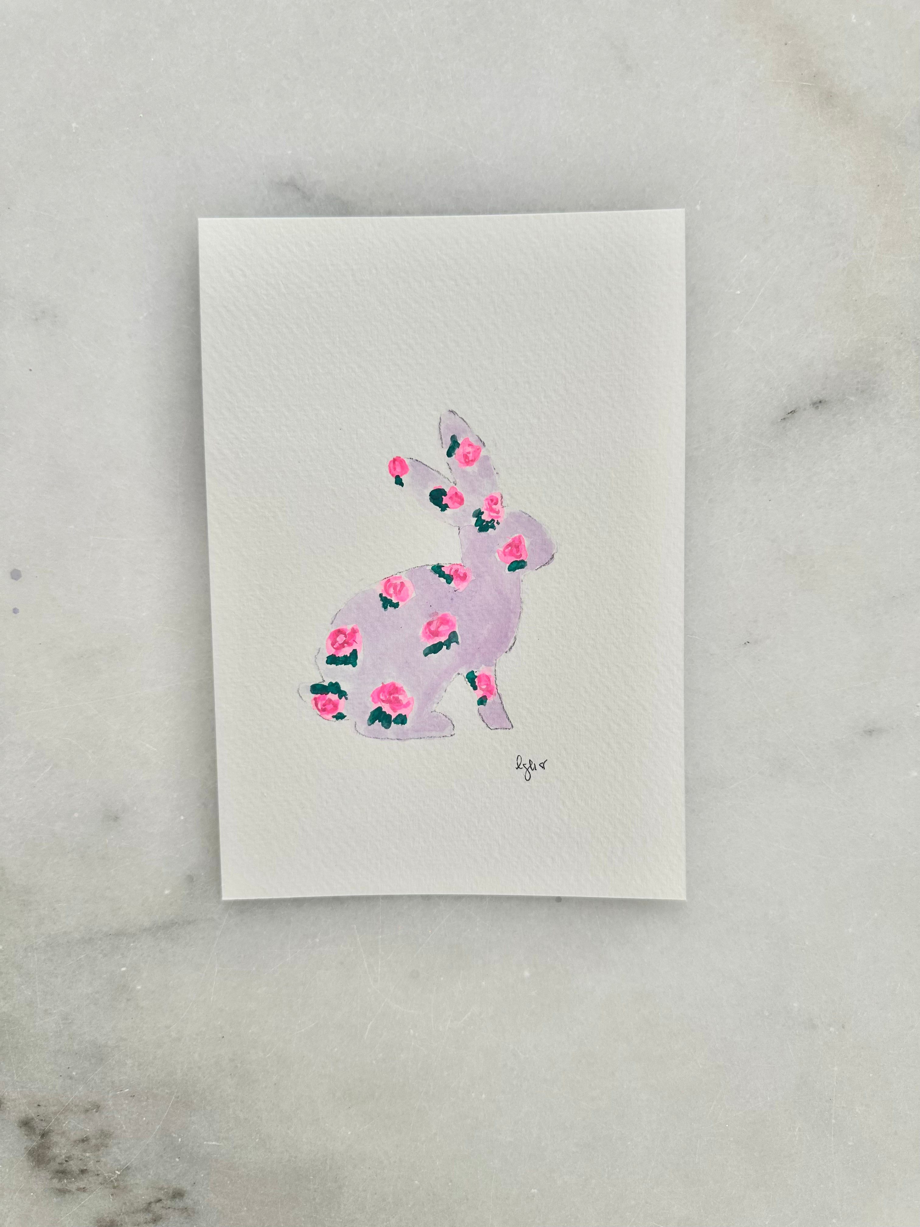 Floral Bunny - Original Painting - 5x7